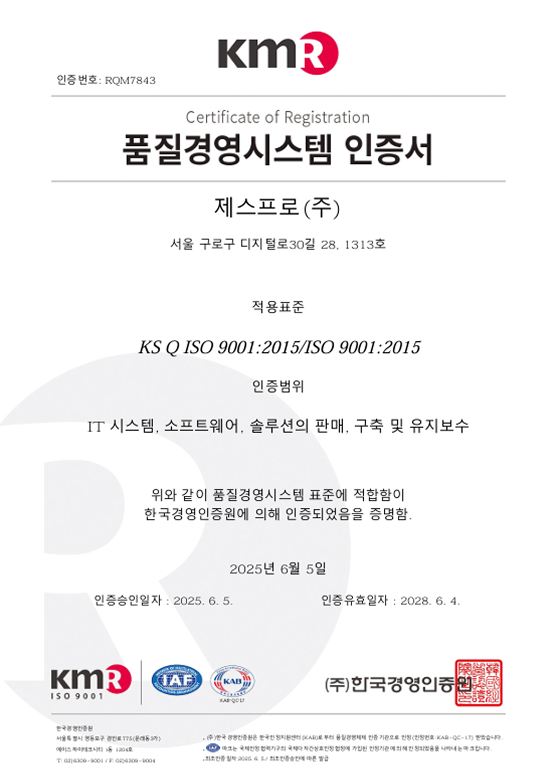 품질경영시스템 인증서